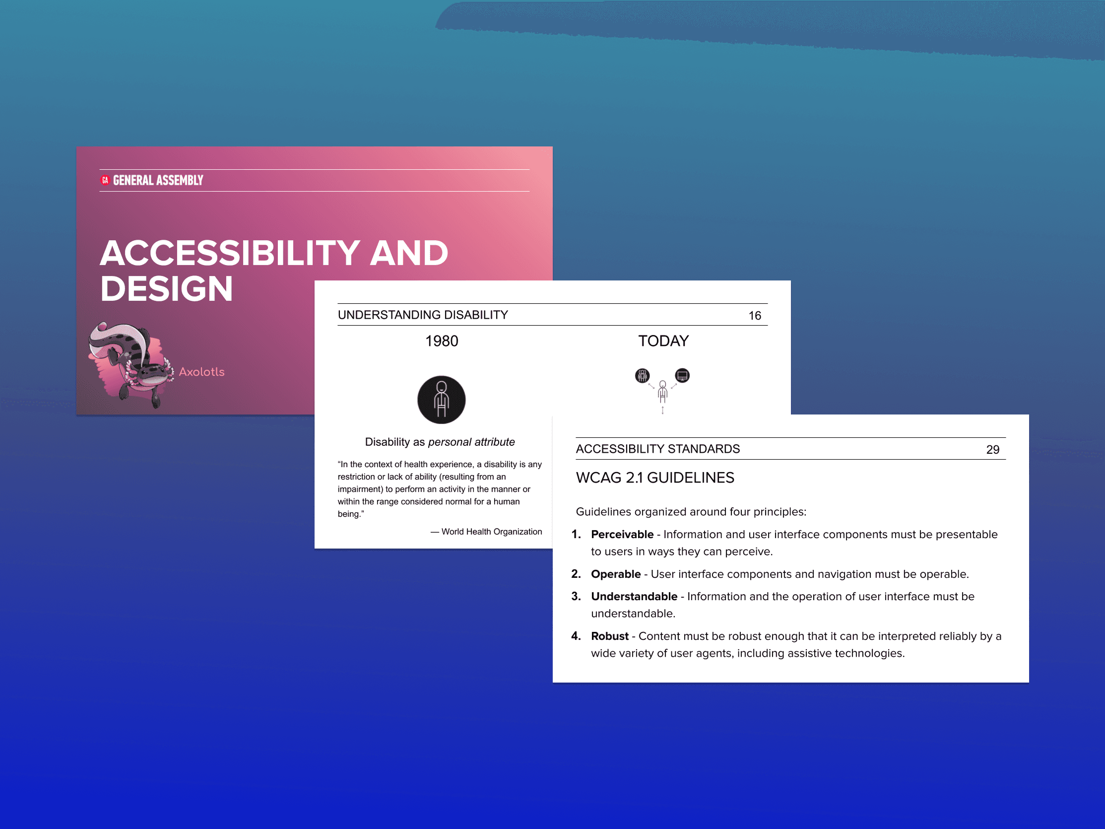 Lectures covered topics all across design, including: user research, accessibility, visual design, and development.
